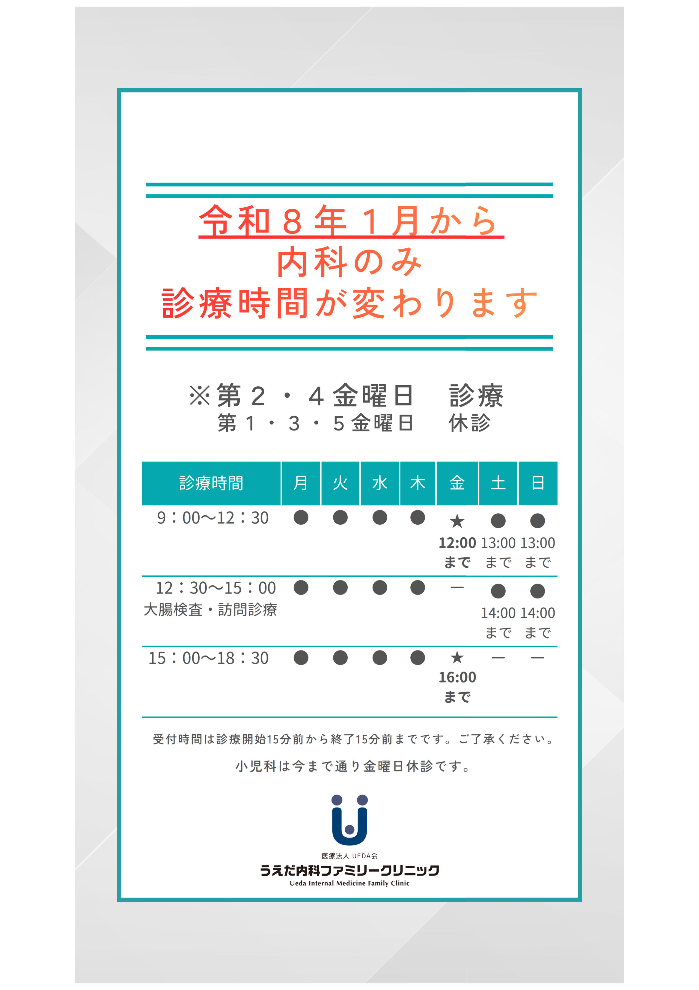 第2・4金曜に診療時間も短めですが内科診療いたしますので、